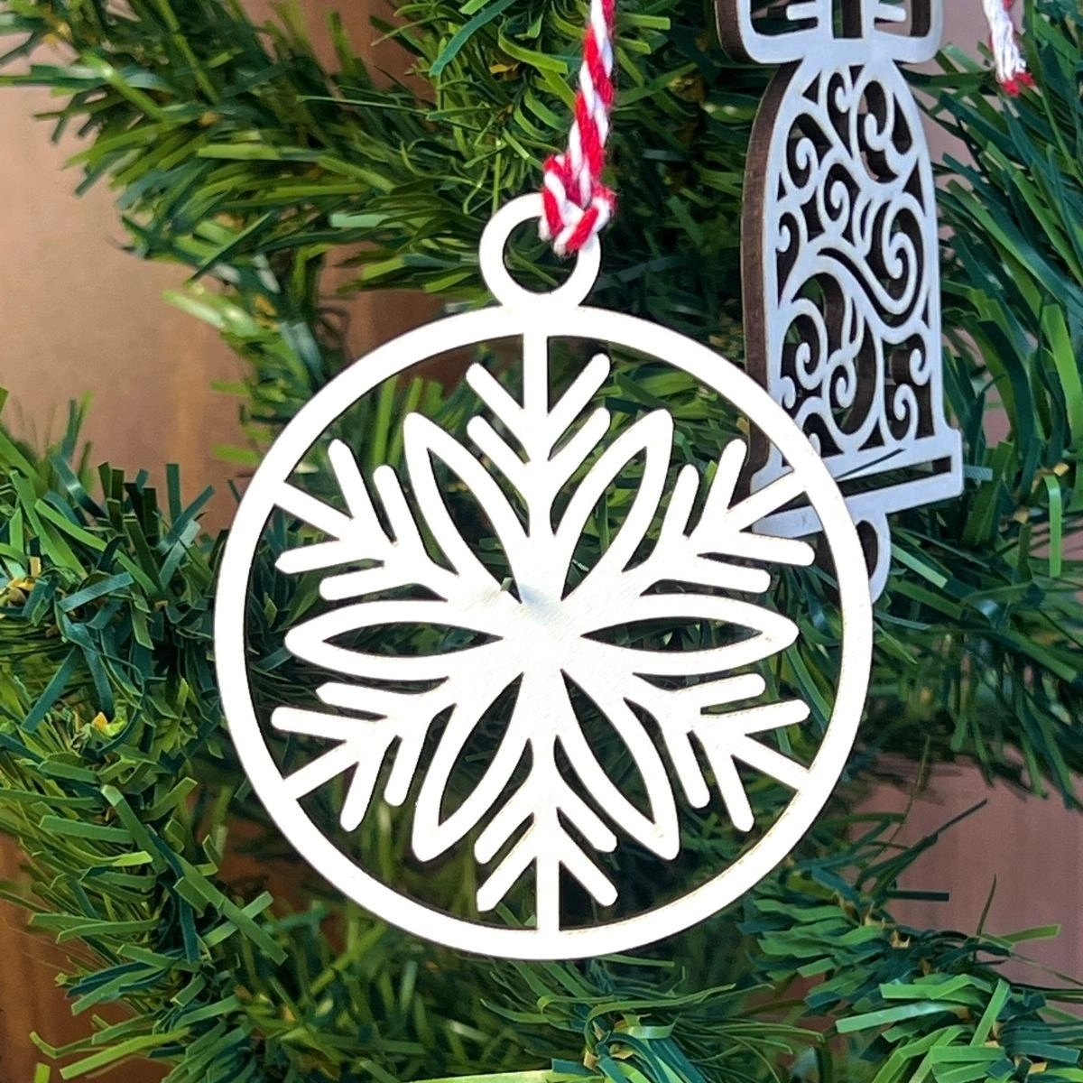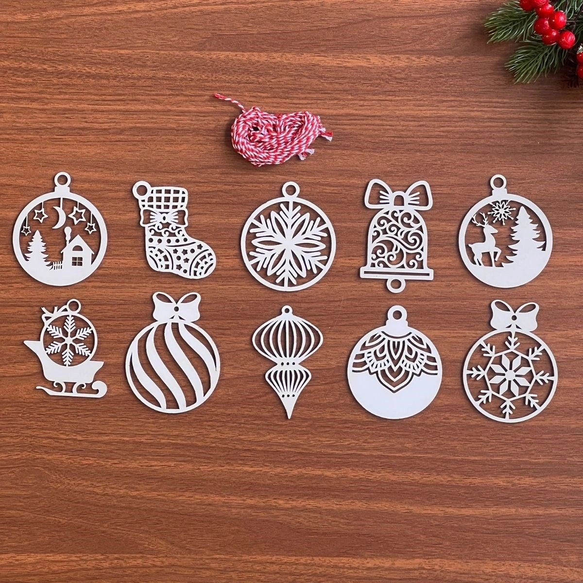 10 Parça Kırmızı Beyaz İpli Karışık Model Ahşap Yılbaşı Ağaç Süsü