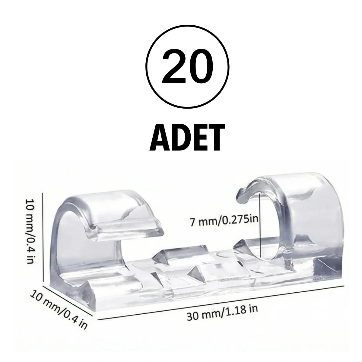 Dağınık ve karışmış kablolara son! 20’li Şeffaf Kablo Tutucu Klips, masaüstü ve duvar üzerindeki kabloları düzenli ve sabit tutmak için tasarlanmış pratik bir çözümdür. Şeffaf ve minimal tasarımı sayesinde bulunduğu yüzeyde dikkat çekmez, dekorasyonu bozmaz.
