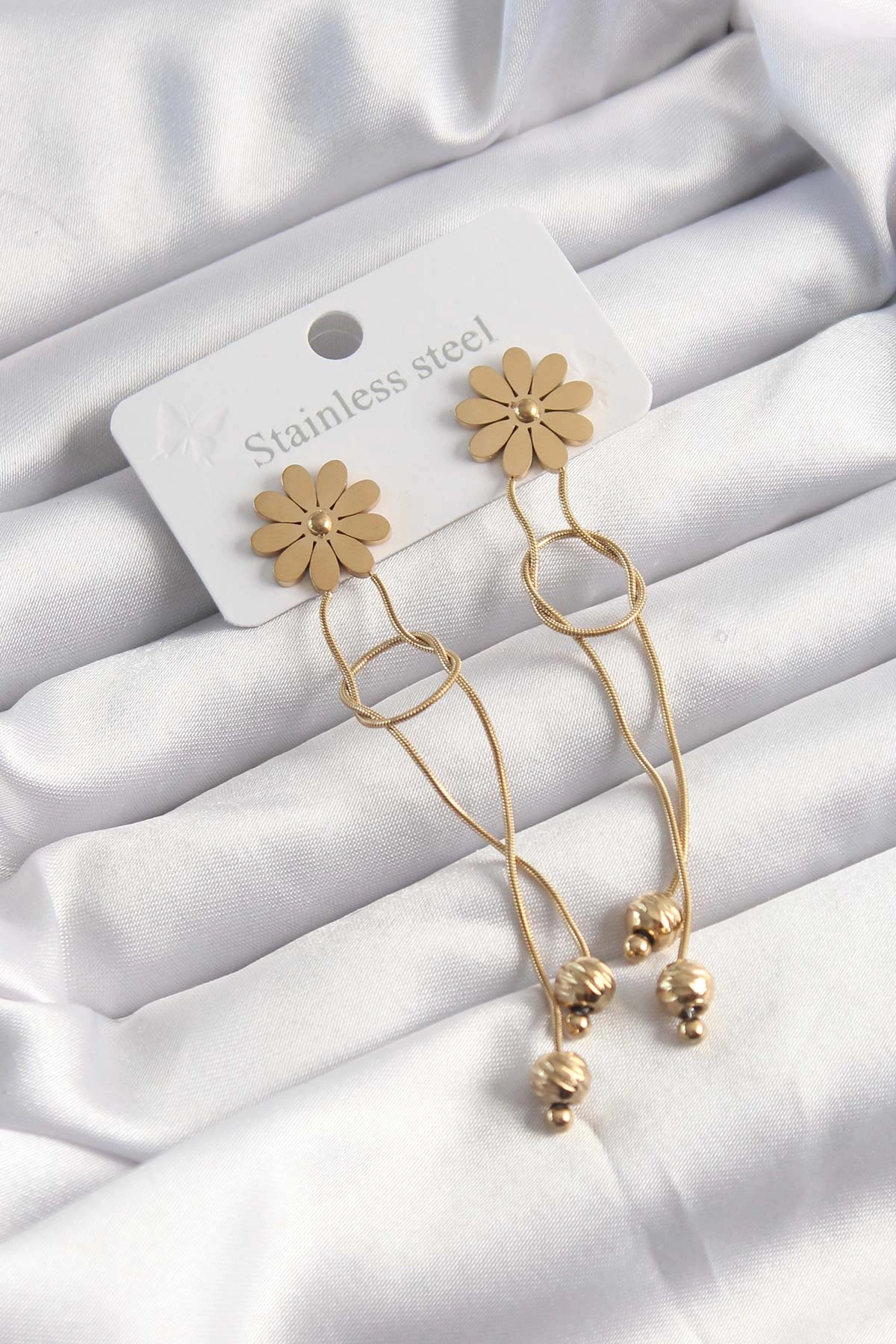 316L Çelik Altın Renk Sallantılı Düğüm Model Papatya Küpe