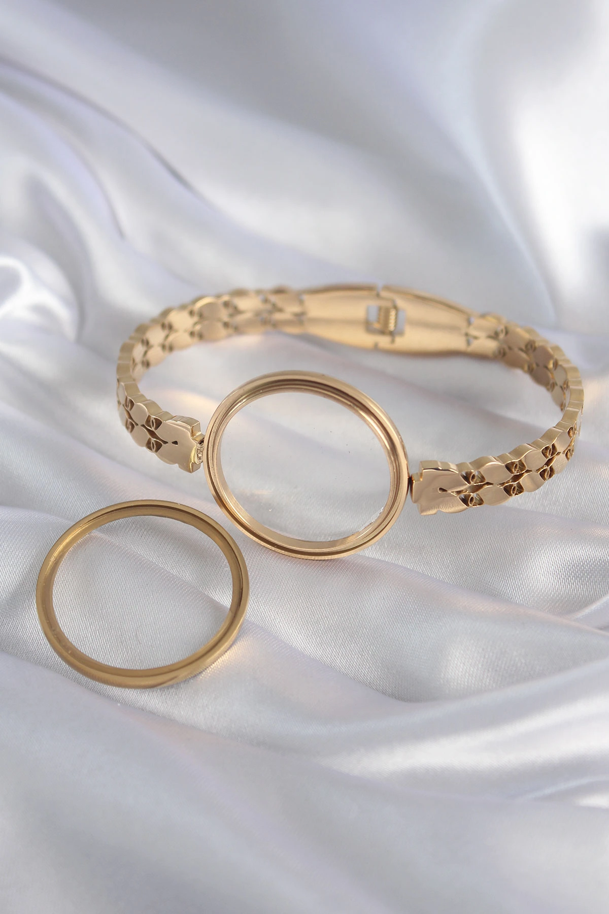 316L Çelik Gold Renk Arpa İşleme Açılabilir Fanus Model Kadın Kelepçe