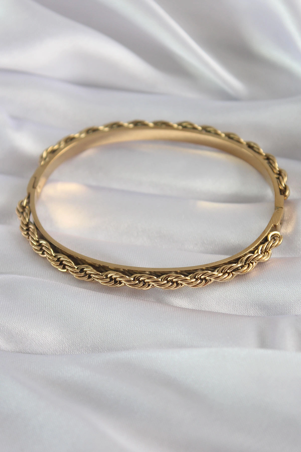 316L Çelik Gold Renk Burgu Zincir Model Kadın Kelepçe