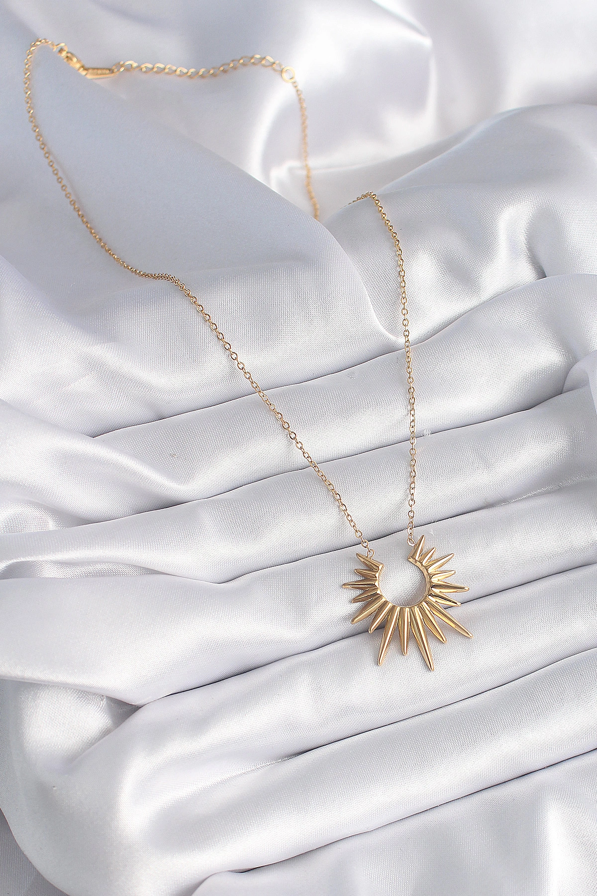 316L Çelik Gold Renk Güneş Model Vintage Kadın Kolye