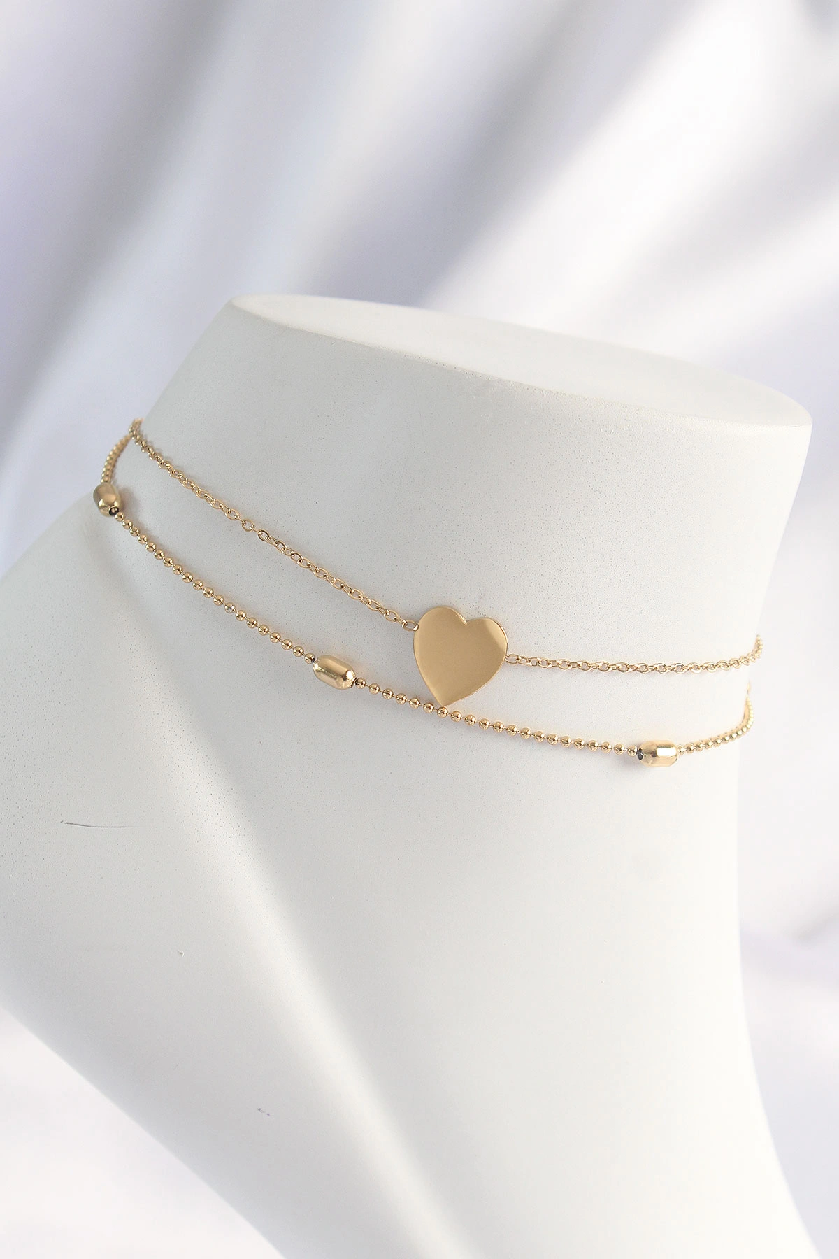 316L Çelik Gold Renk Kalp Tasarımlı 2li Halhal