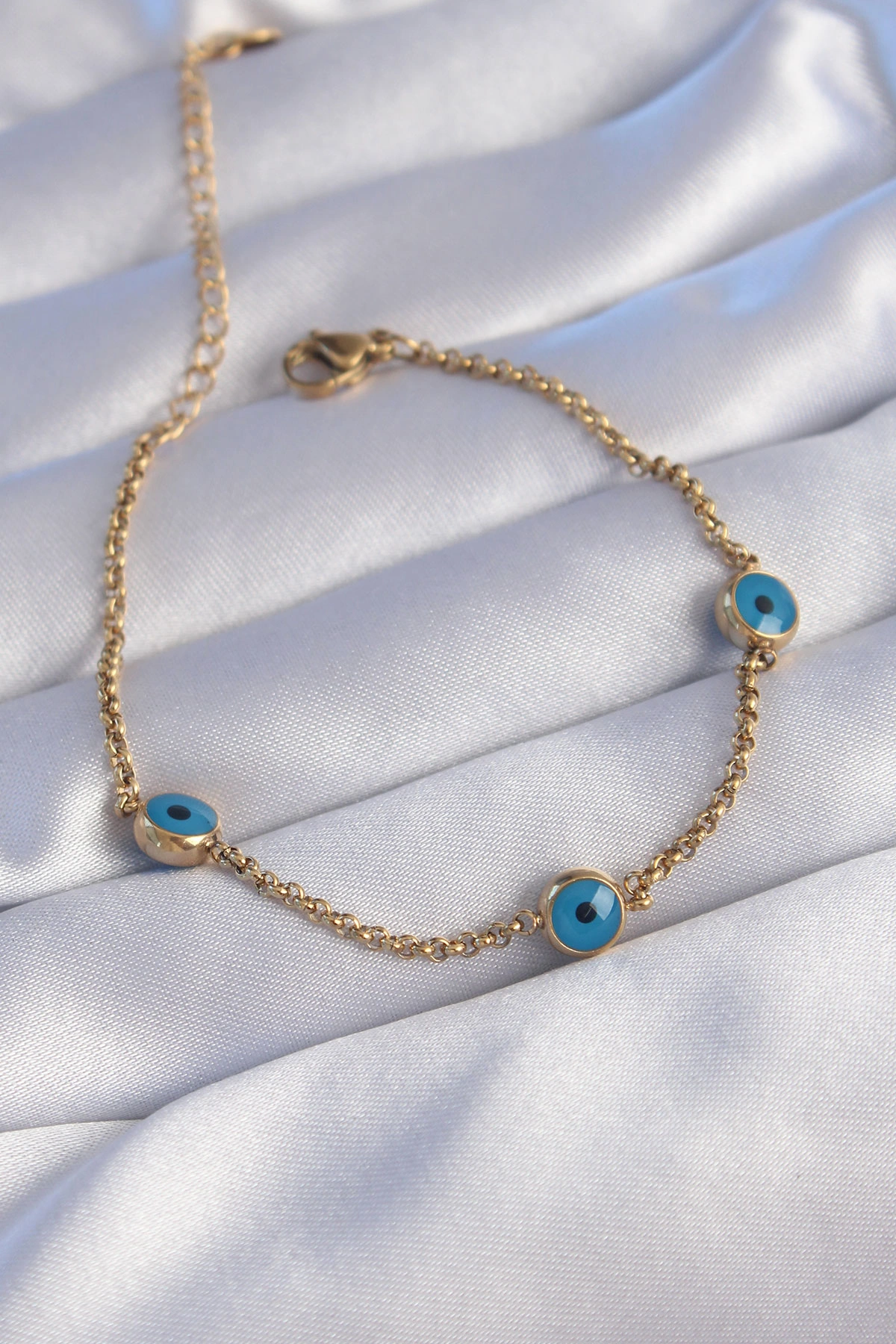 316L Çelik Gold Renk Nazar Boncuk Tasarımlı Bileklik