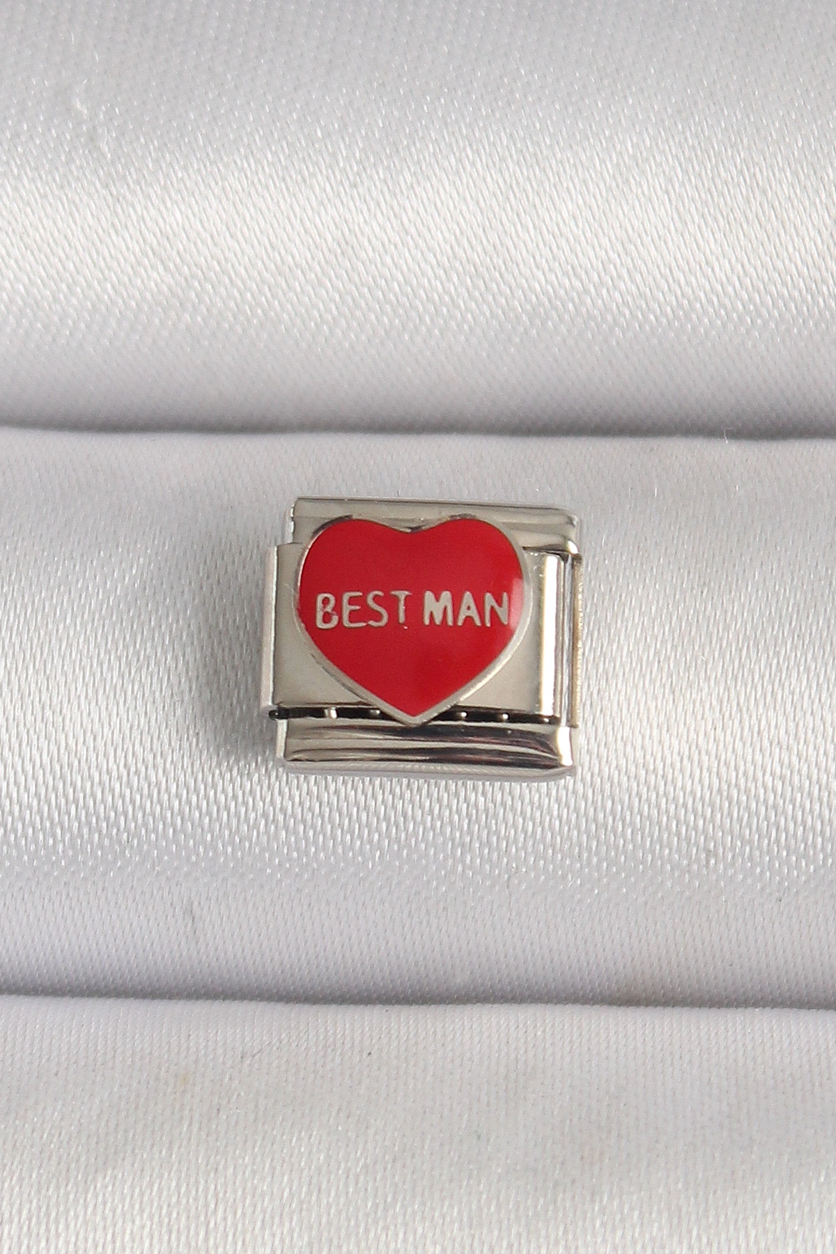 316L Çelik Gümüş Renk 'Best Man' Yazılı Kırmızı Kalp İşlemeli Nomination Charm