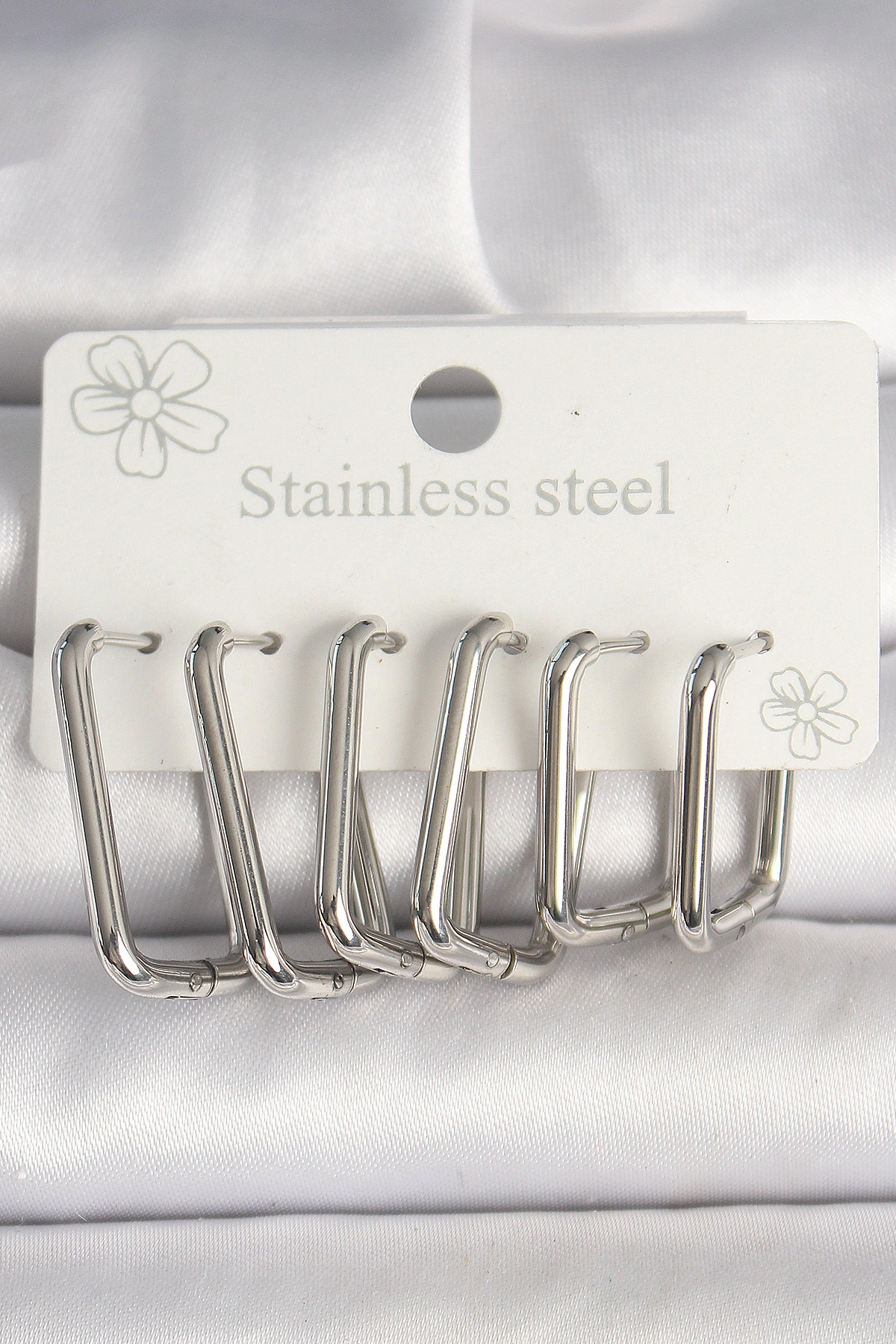 316L Çelik Gümüş Beyaz Renk 3 Boy Yonca Küpe Seti