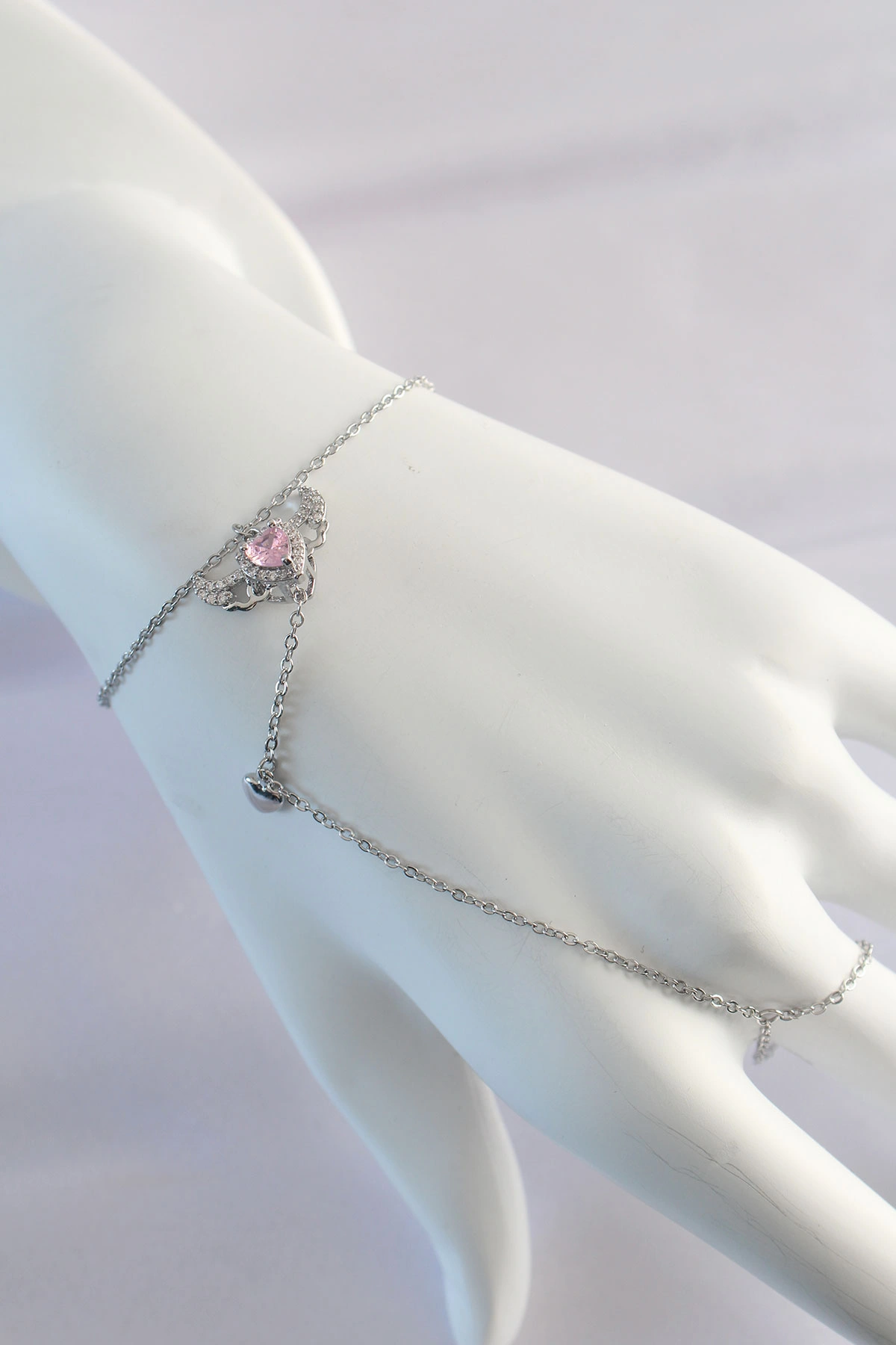 316L Çelik Gümüş Renk Pembe Zirkon Taşlı Kanatlı Kalp Model Şahmeran