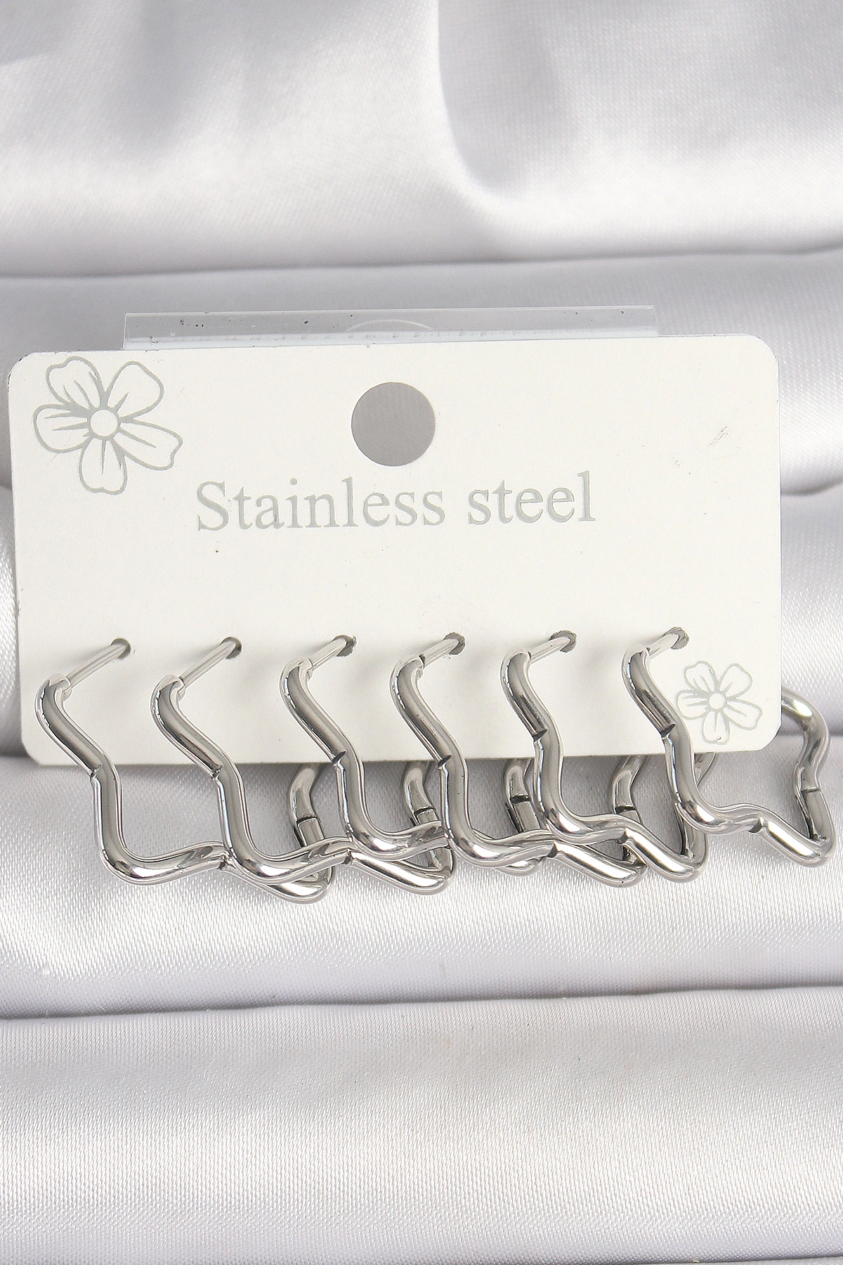 316L Çelik Gümüş Beyaz Renk 3 Boy Yonca Küpe Seti