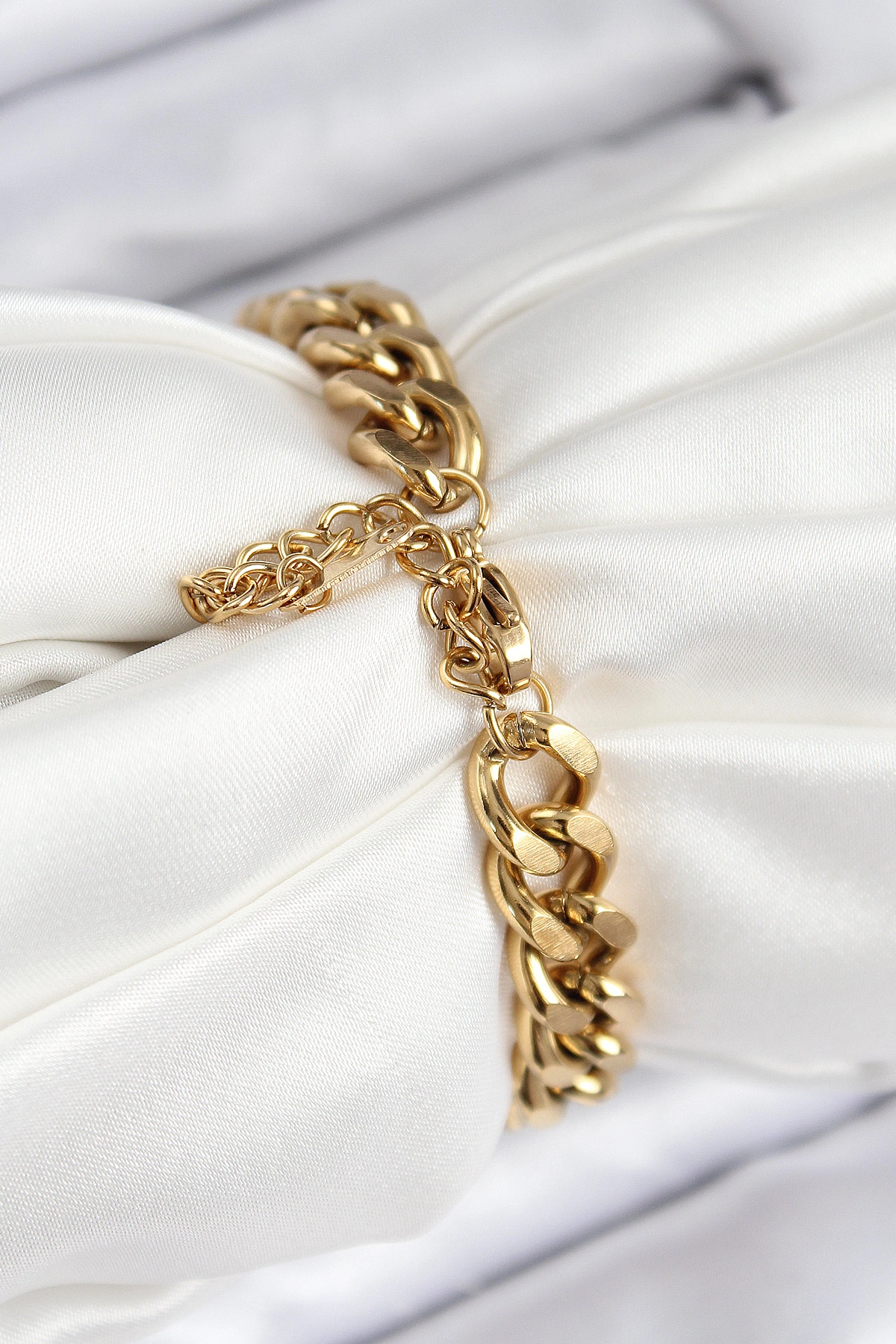 316L Çelik Klasik Kalın Zincir Model Gold Renk Kadın Bileklik
