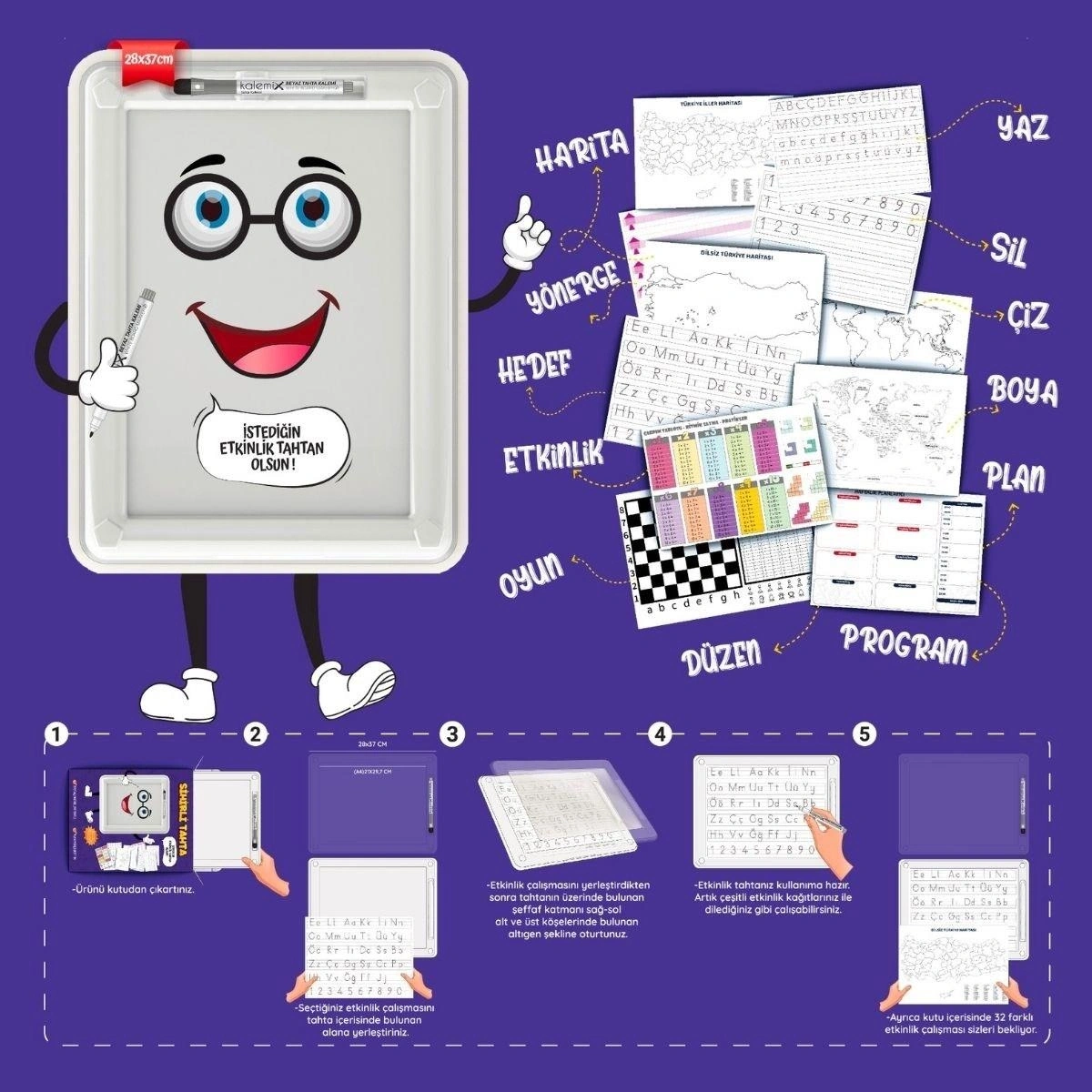 32 Farklı Etkinlikli Kalem ve Silgi Hediyeli Eğitici Sihirli Etkinlik Tahtası