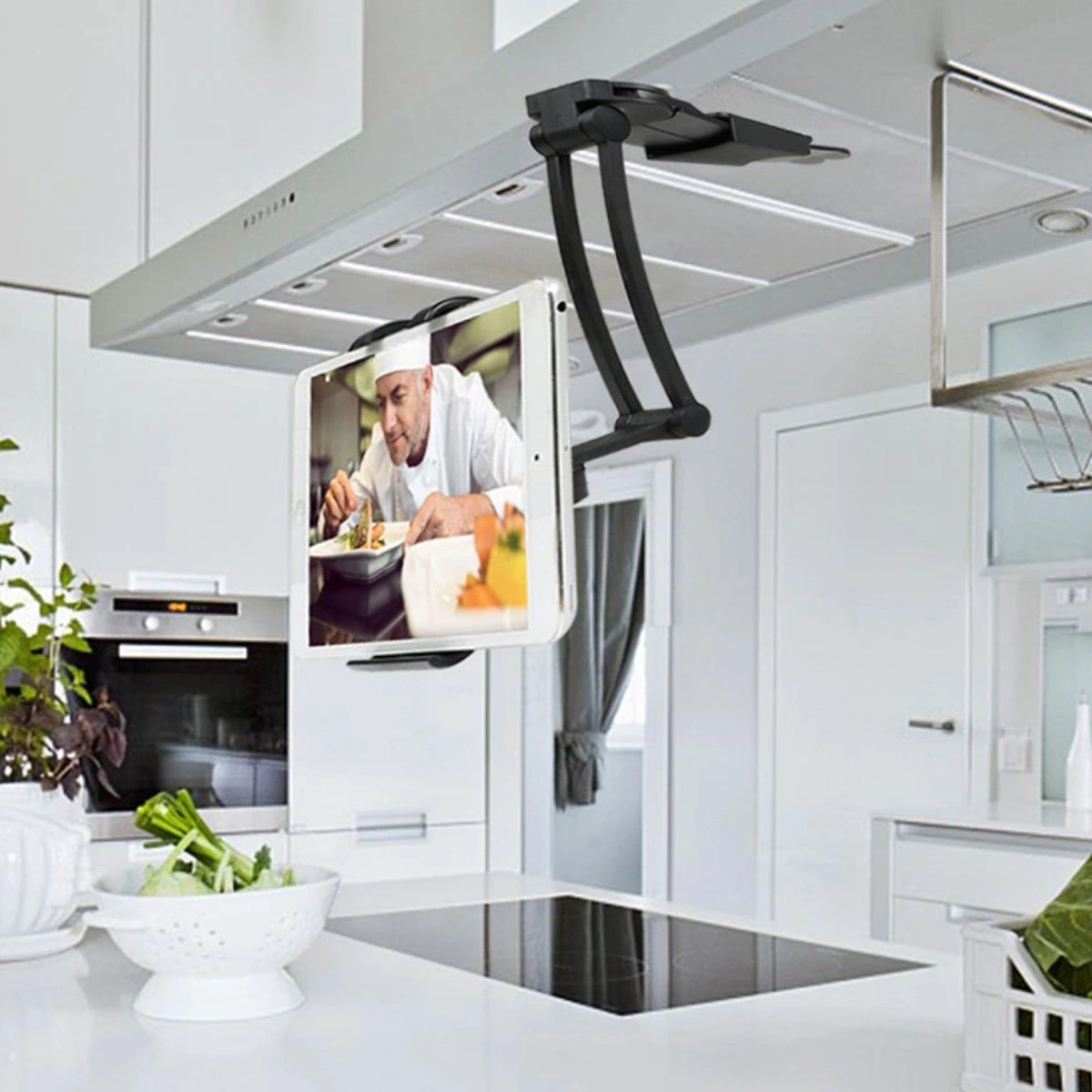 Bu sağlam ve şık alüminyum stand, bir duvara, mutfak dolabının altına yerleştirilebilir veya uygulamalara rahatça erişmek veya videoları izlemek için tezgah üstü stand olarak kullanılabilir.