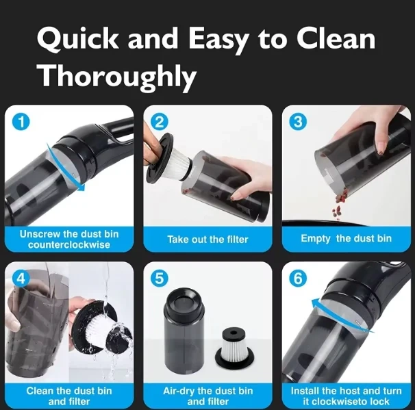 Taşınabilir Akülü El Süpürgesi, USB Şarjı, Evcil Hayvan Saçları Için Islak Kuru Araba Süpürgesi, Ev ve Araba Temizliği