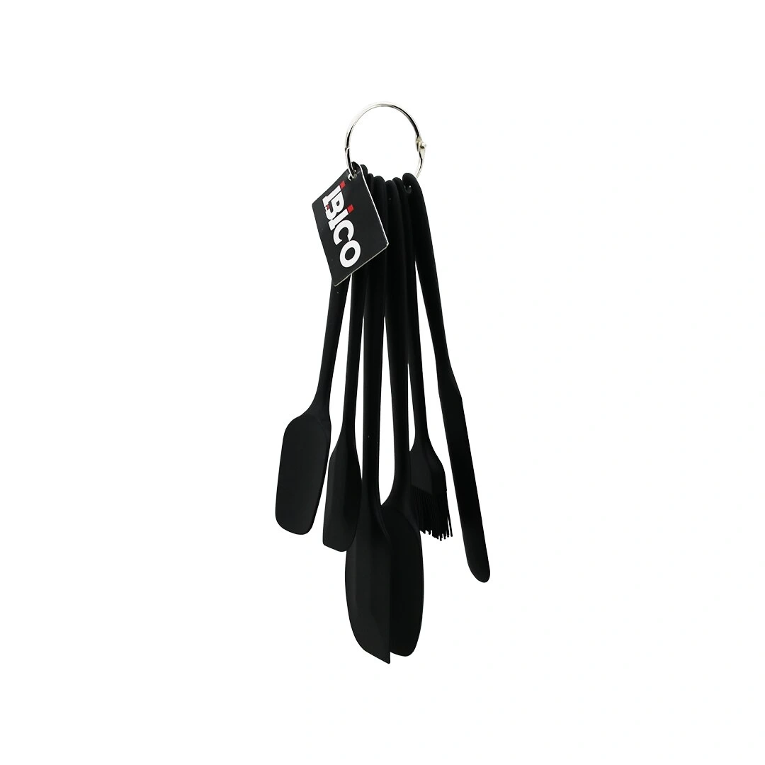 6PCS SİLİKON - SİYAH MUTFAK SETİ 2 KAŞIK - 3 SPATULA - YUMURTA FIRÇA METAL ASMA HALKALI