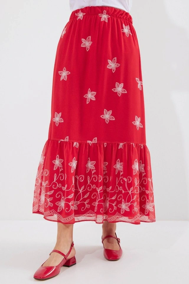8010 Desenli Şifon Etek - A.Kırmızı