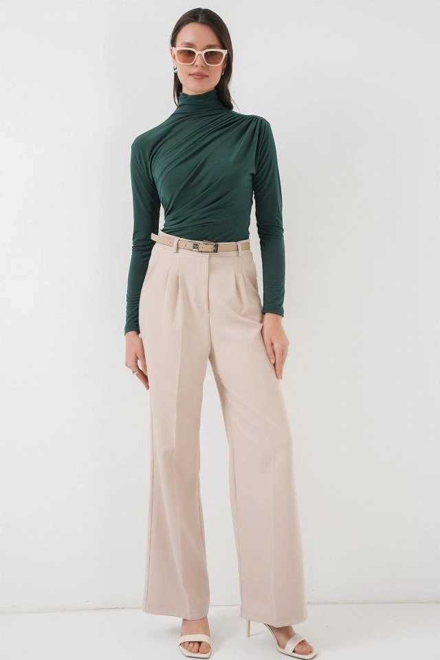 925 Büzgü Detaylı Sandy Bluz - Zümrüt Yeşili