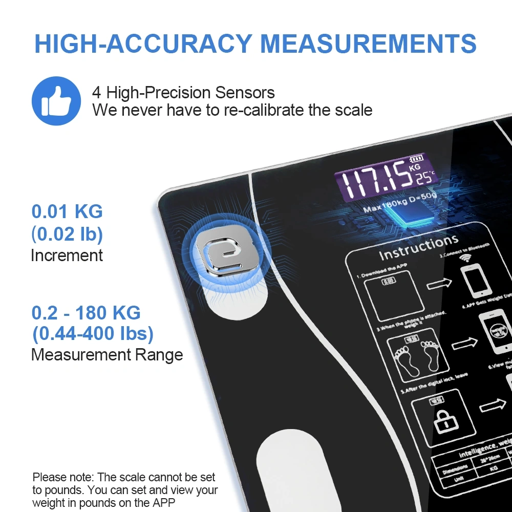 Akıllı Kablosuz Dijital Banyo Ve Vücut Yağ Ağırlık Ölçeği Vücut Kompozisyonu Analizörü Bluetoothlu Tartı