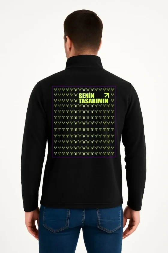 Ön Arka Polar Kazak Dik Yaka - Siyah