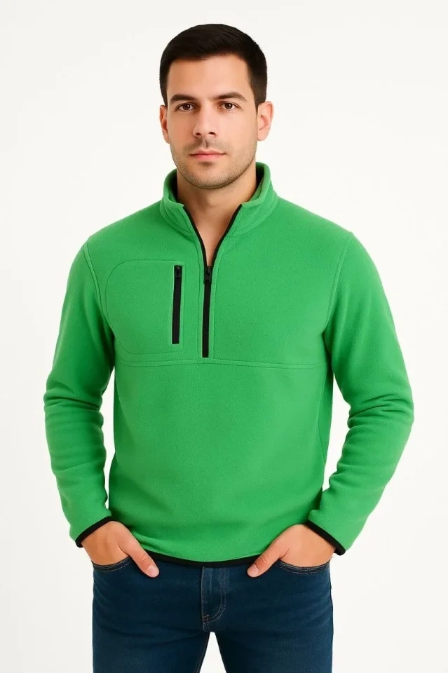 Arka Polar Kazak Dik Yaka - Yeşil