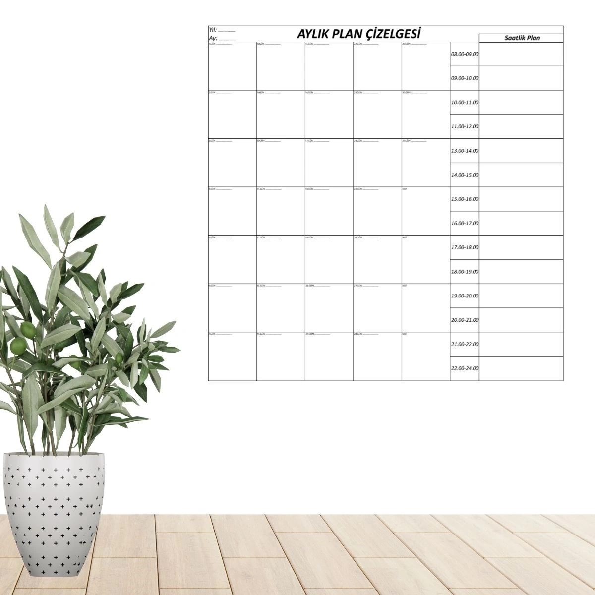 Aylık iş planınızı oluşturabileceğiniz ve duvara yapıştırılabilir organizer takvim.