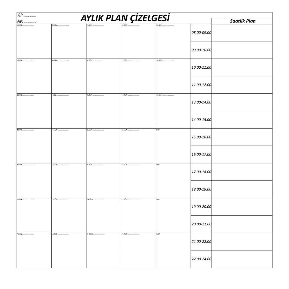 Ayın her günü için planlarınızı detaylı olarak not alabilirsiniz.