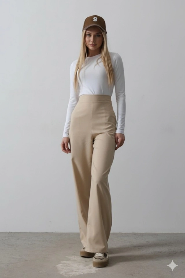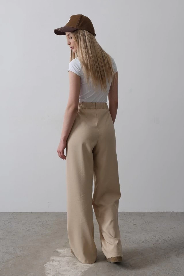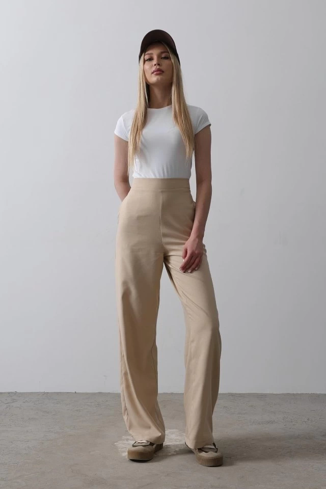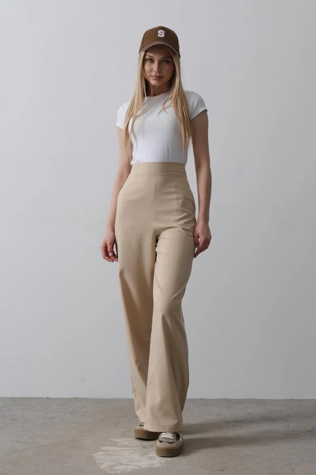 Beli Yarım Lastikli Palazzo Pantolon - Camel