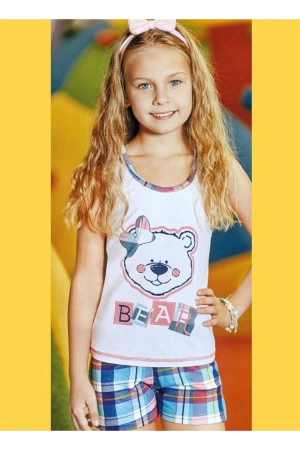 Kadın Beyaz Çilek desenli Şortlu Pijama Takımı 5053