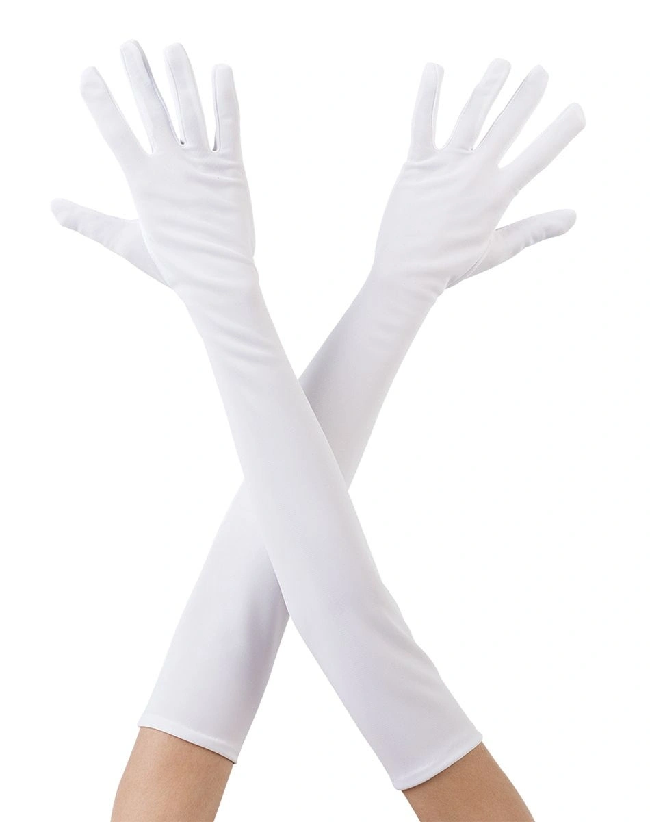 Beyaz Renk Dirseğe Kadar Uzun Kumaş Eldiven 40 cm (4940)