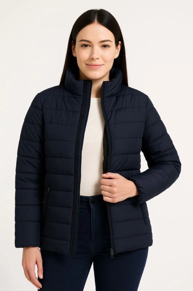 Bomber Mont Ceket – Su İtici Kumaş, Kapitone Astarlı, Fermuarlı, Kışlık - Lacivert