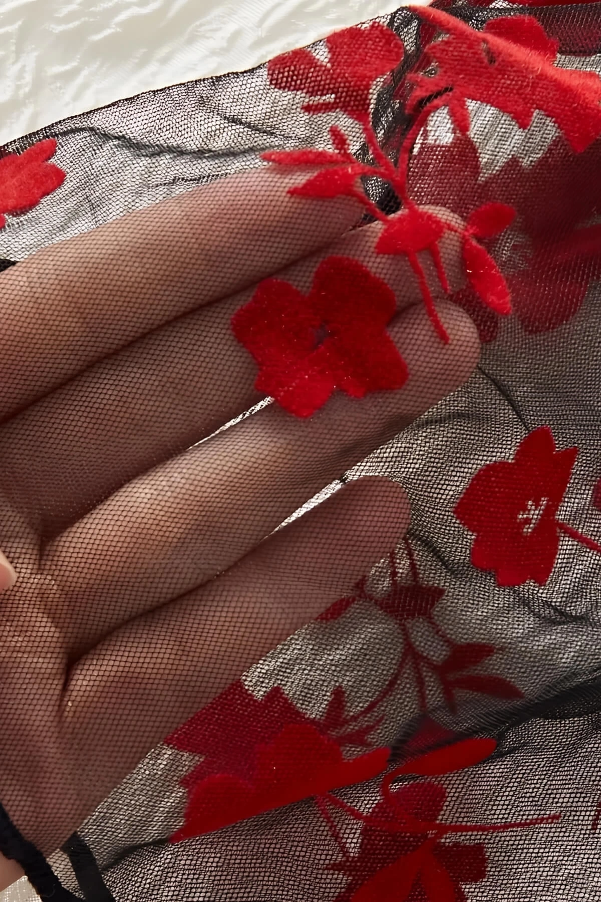 Çiçek Desenli Siyah Transparan Şortlu Gecelik TM1377