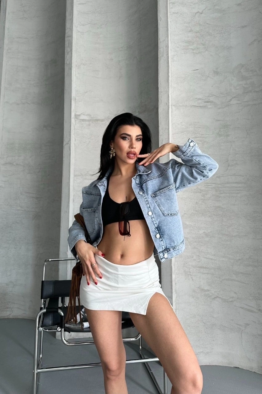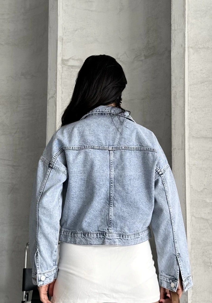 Modern tasarımıyla öne çıkan Çift Cepli Kol Katlamalı Kar Yıkama Crop Kot Ceket Buz Mavi D2000, gardırobunuzun vazgeçilmez parçalarından biri olmaya aday.