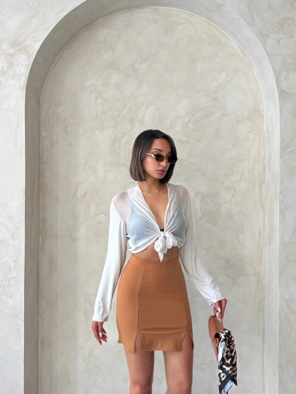 Çift yırtmaçlı etek camel s25910--Çift yırtmaçlı etek camel s25910, şıklığı ve rahatlığı bir arada sunar. Ürün Özellikleri: Kadın giyim kategorisinde yer alır. Trend camel rengi ile modern bir görünüm sağlar. Yüksek bel tasarımı ile vücudu güzel bir şekilde kavrar. İki adet yırtmaç detayı ile hareketli bir hava katar. İnce ve hafif kumaşı sayesinde gün boyu konfor sunar. Farklı beden seçenekleri mevcuttur. Ofis kombinleri veya günlük şıklık için uygun bir seçenektir.