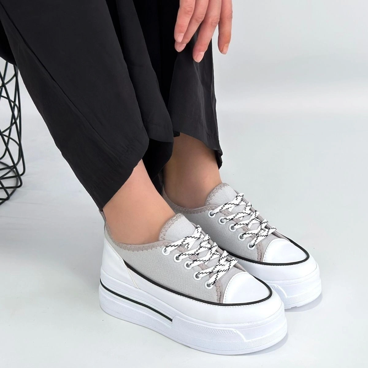 Dalen Gri Keten Bağcıklı Spor Ayakkabı