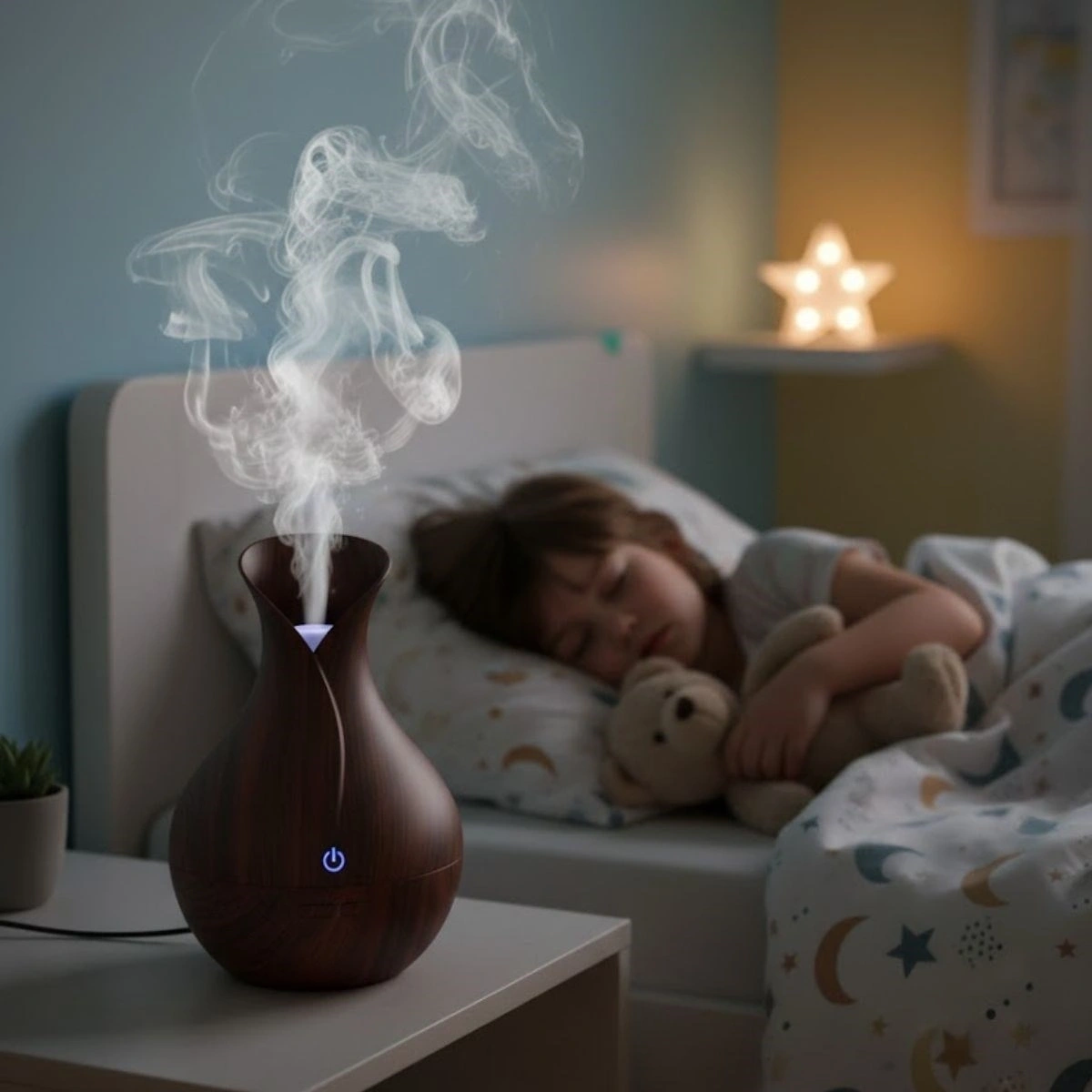 Ultrasonik buhar sistemi, suyu ısıtmadan soğuk buhar haline getirerek enerji tasarruflu ve güvenli bir kullanım sunar. LED aydınlatma özelliği hem gece lambası hem de ortam ışığı olarak kullanılabilir. Kolay doldurulabilen su haznesi ve pratik kullanım yapısı sayesinde günlük rutininizde zahmetsiz bir deneyim sağlar.
