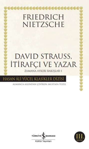 Ürün Adı: David Strauss, İtirafçı ve Yazar - Zamana Aykırı Bakışlar 1 - Hasan Ali Yücel Klasikleri Ürün Kodu: 9786053325840 Yazar: Friedrich Nietzsche Basım Yılı: 2021 Kapak Türü: Karton Kapak Sayfa Sayısı: 112 Kağıt Cinsi: Kitap Kağıdı Çevirmen: Mustafa Tüzel