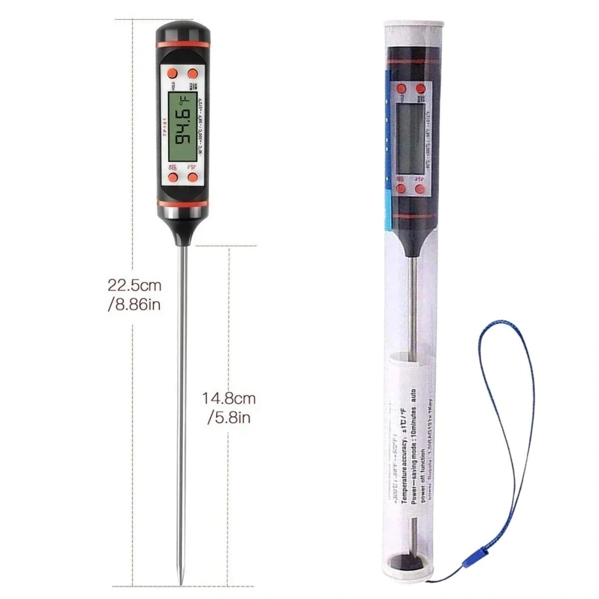 Dijital Gıda Termometresi, mutfakta hassas ısı ölçümleri yapmanızı sağlayarak yemeklerinizin hem güvenli hem de ideal sıcaklıkta hazırlanmasına yardımcı olur. Süt ısıtma, yoğurt mayalama, et pişirme ve bebek maması hazırlama gibi birçok kullanım alanında pratik bir çözümdür.