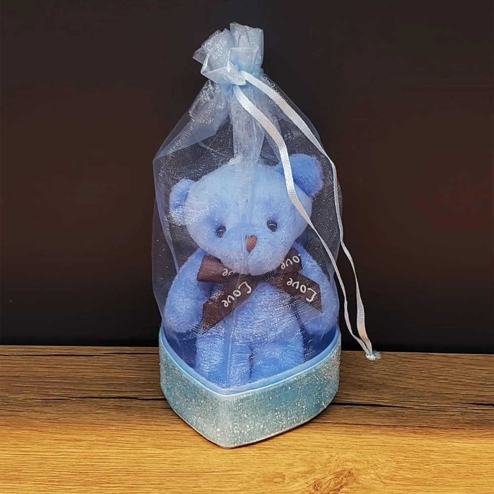 Tül kese içinde bulunan ayıcık ile özel günlerde hediye verebileceğiniz hazır hediyeliklerden.