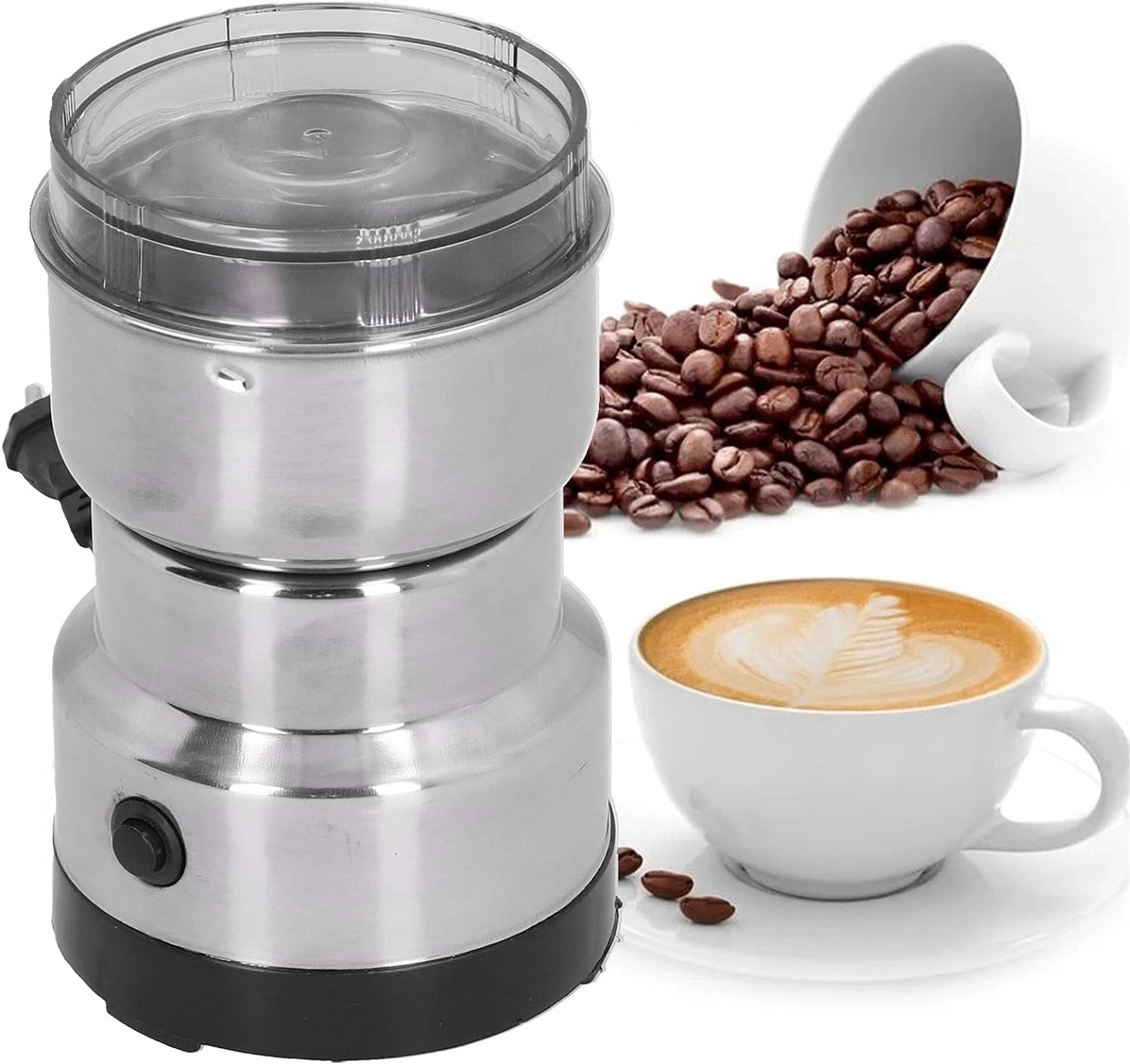 Elektrikli kahve öğütücümüz tek elle kolayca tutulabilir ve kompakt tasarımı tezgahta minimum yer kaplar, ayrıca bir dolap veya çekmecede saklaması kolaydır.
