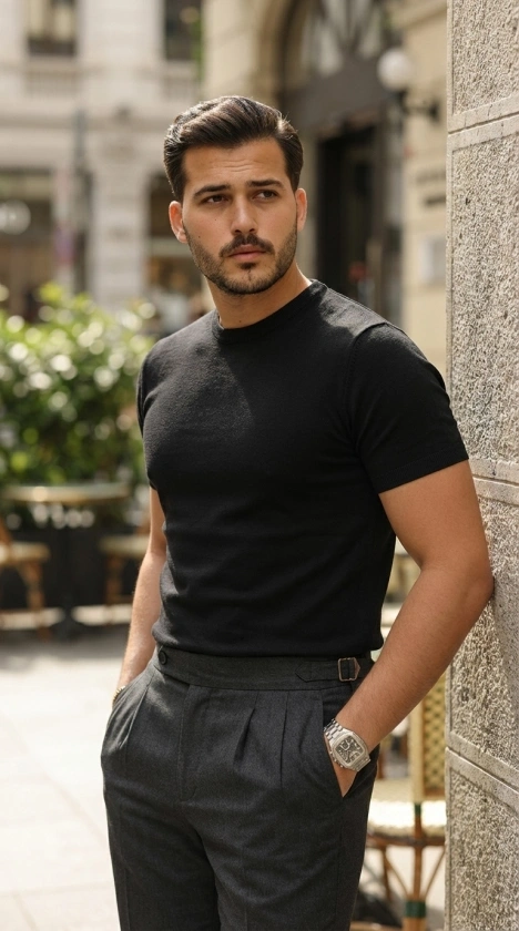 Erkek Basic Bisiklet Yaka Kısa Kollu Triko Tişört - %100 Pamuk Akrilik