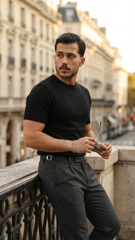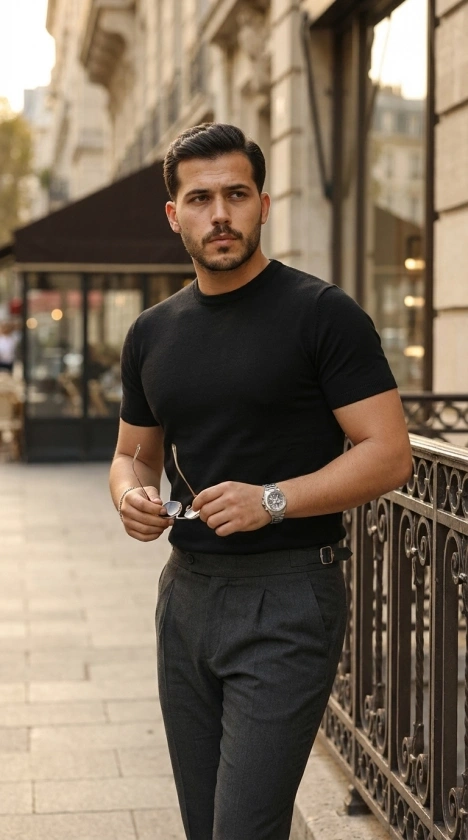 Erkek Örgü Desenli Renkli Kısa Kollu Triko Tişört
