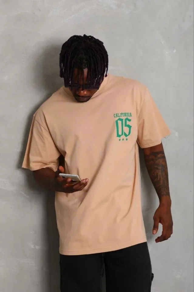 Erkek Baskılı T-Shirt Kısa Kol Bisiklet Yaka Regular Fit Rahat Kalıp Günlük Tişört - Bej