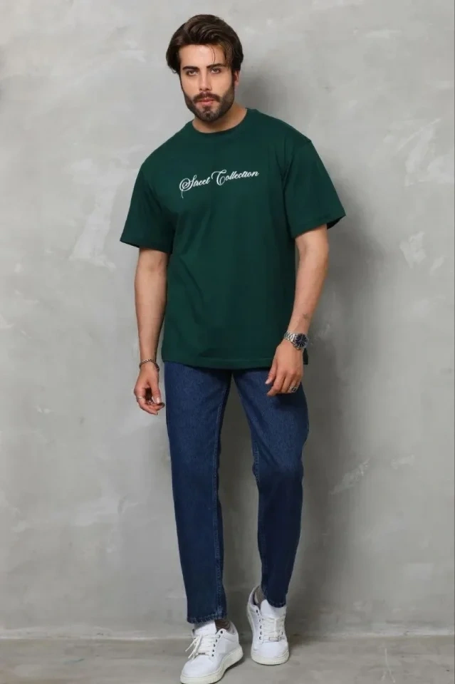 Erkek Baskılı T-Shirt Kısa Kol Bisiklet Yaka Regular Fit Rahat Kalıp Günlük Tişört - Çağla Yeşili