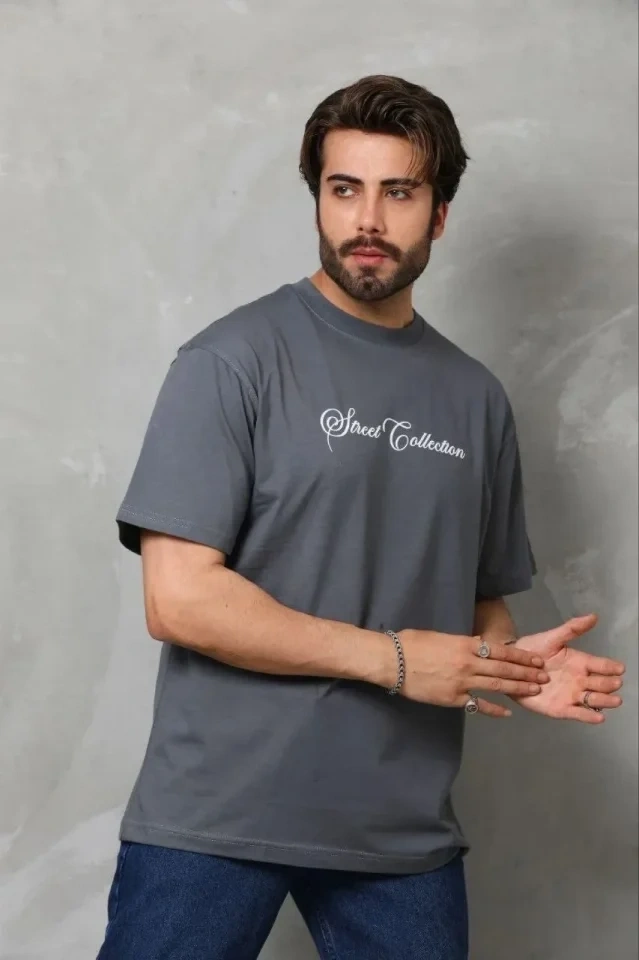 Erkek Baskılı T-Shirt Kısa Kol Bisiklet Yaka Regular Fit Rahat Kalıp Günlük Tişört - Füme
