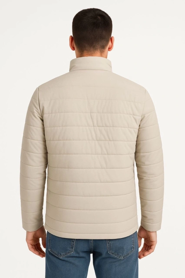Erkek Bomber Mont Ceket – Su İtici Kumaş, Kapitone Astarlı, Fermuarlı, Kışlık - Bej