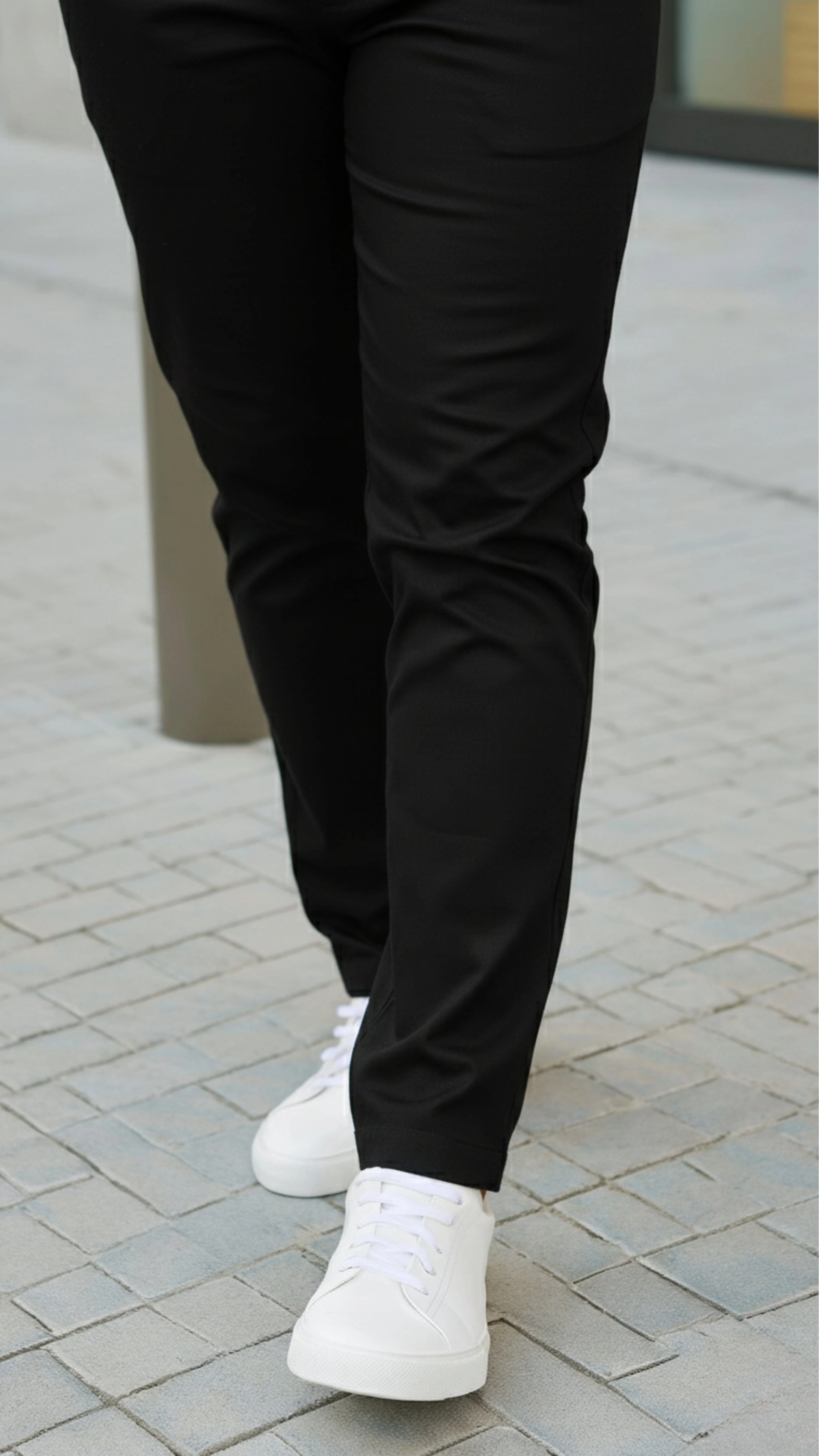 Erkek Diagonel Mikro Dokulu Cepli Beli Lastilki Pantolon - Siyah