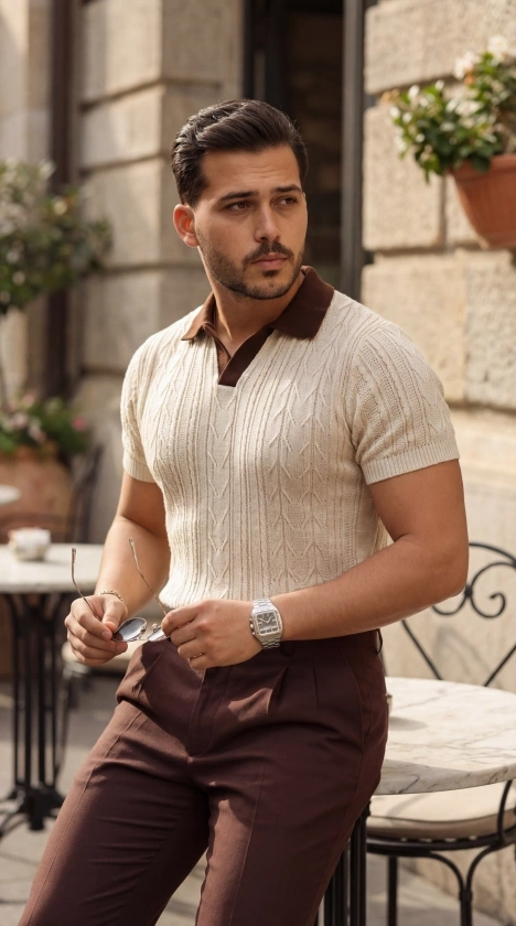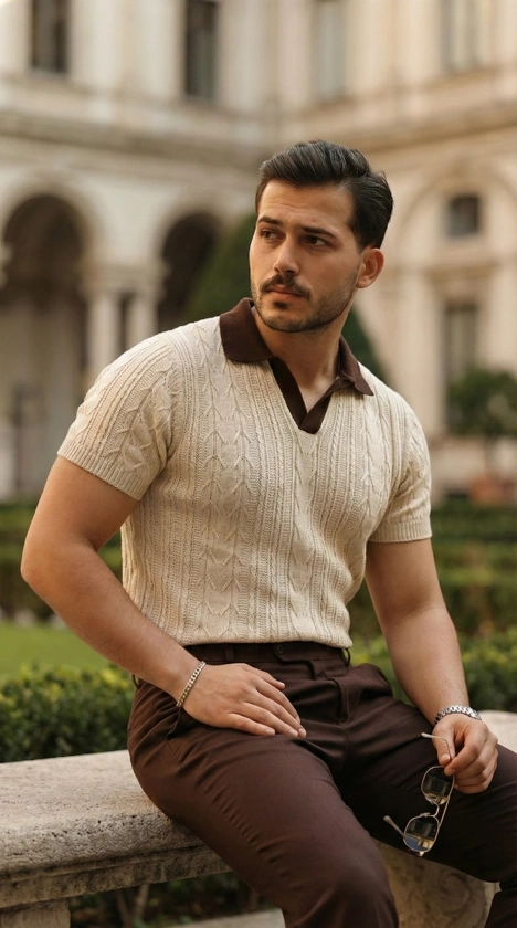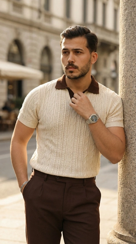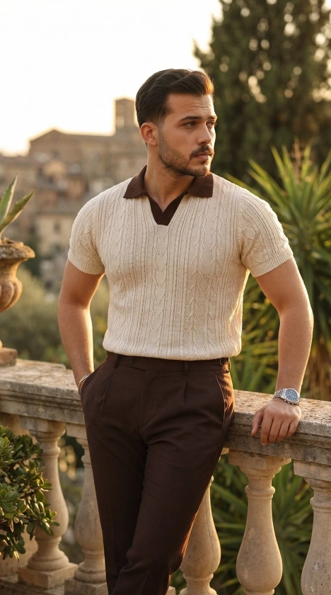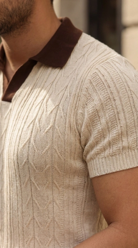 Erkek Örgü Desenli Renkli Kısa Kollu Triko Tişört