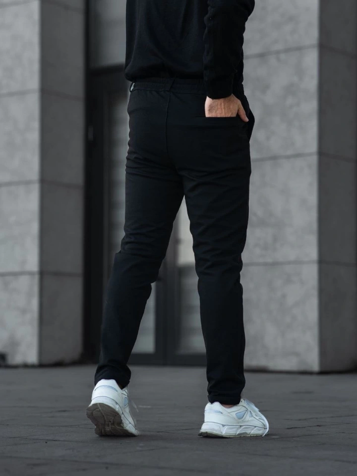 Erkek Diagonel Mikro Dokulu Cepli Beli Lastilki Pantolon - Siyah