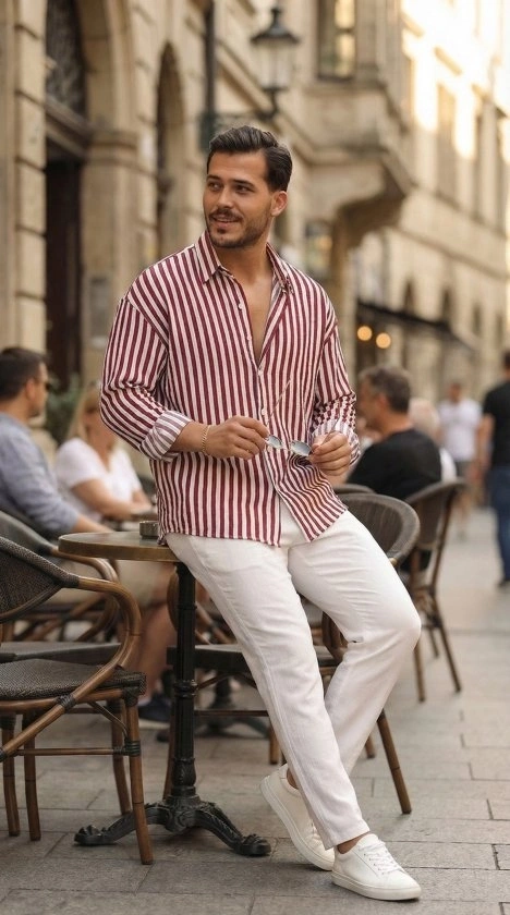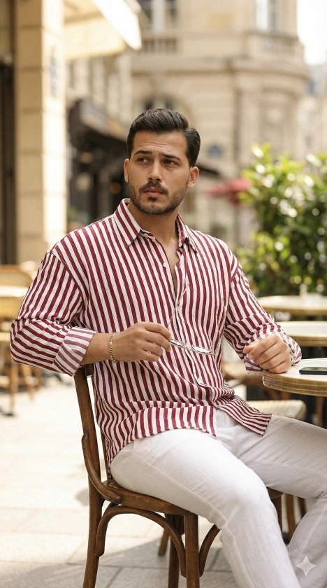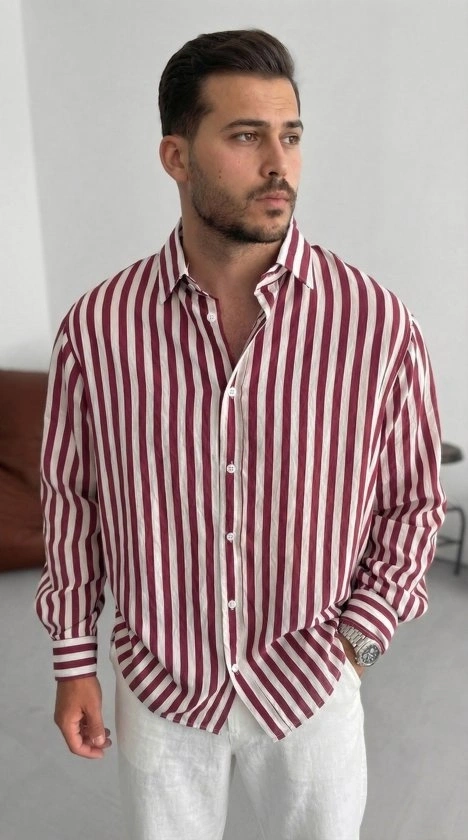 Erkek Dikey Çizgili Yarım Oversize Gömlek