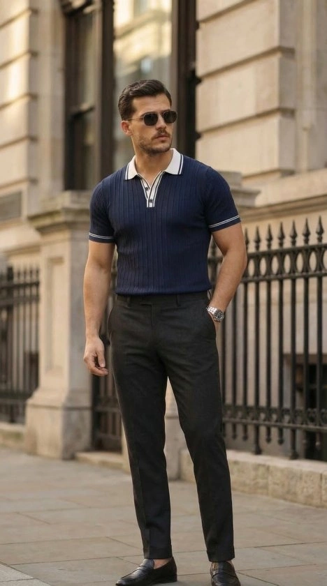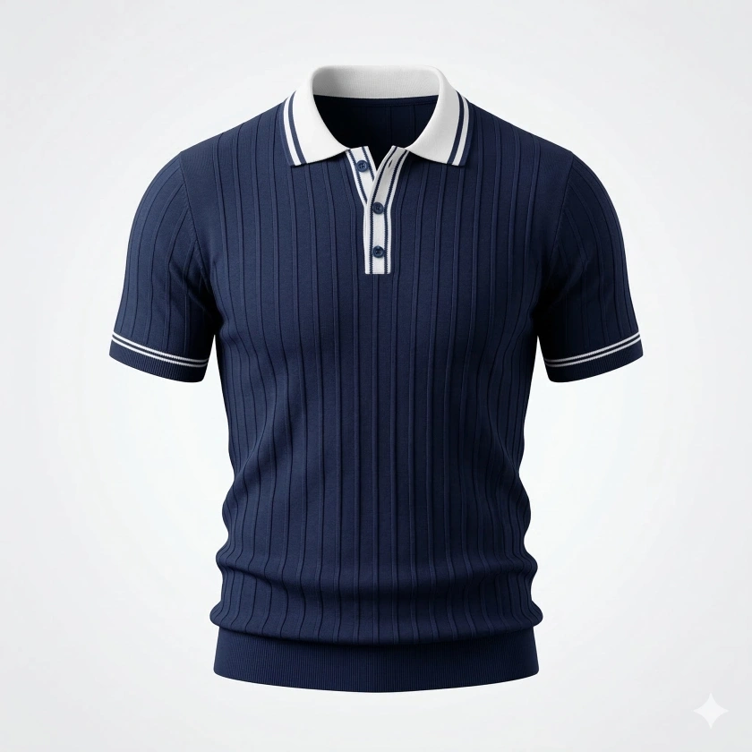 Erkek Düğme Yakalı Kontrast Yaka Triko Tişört