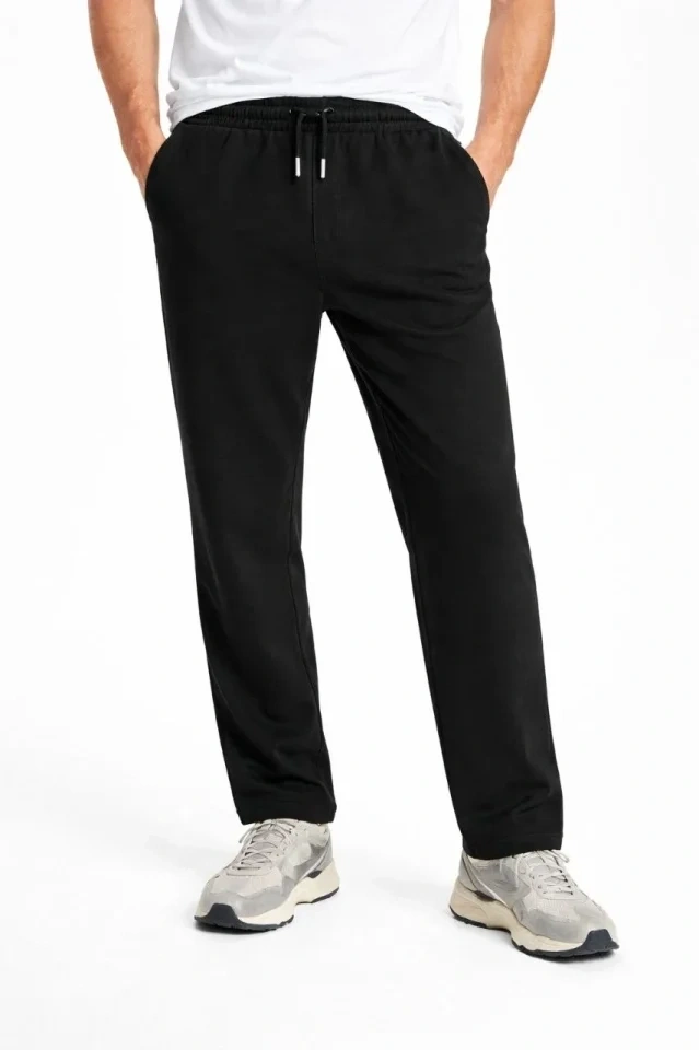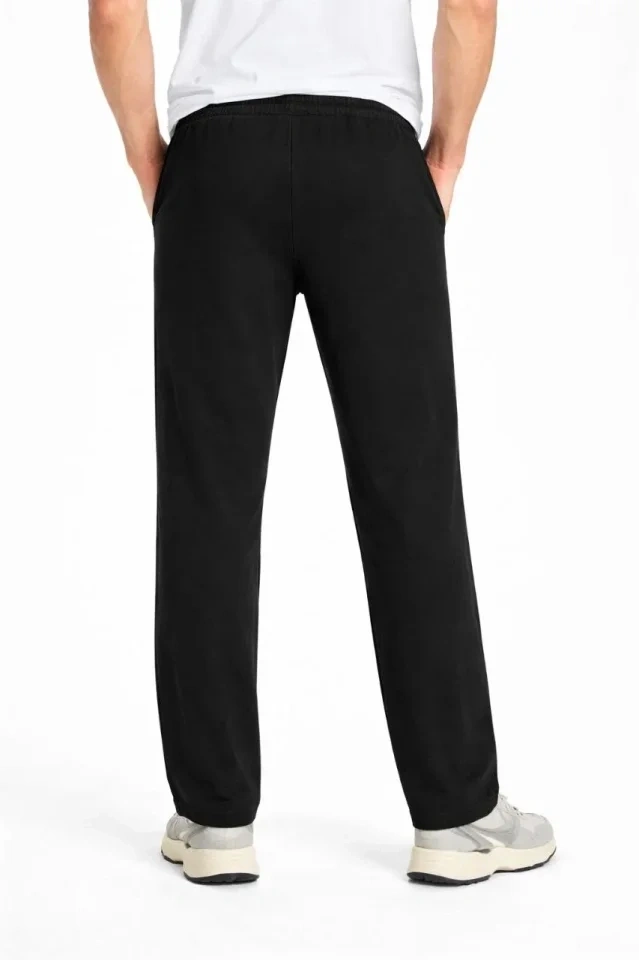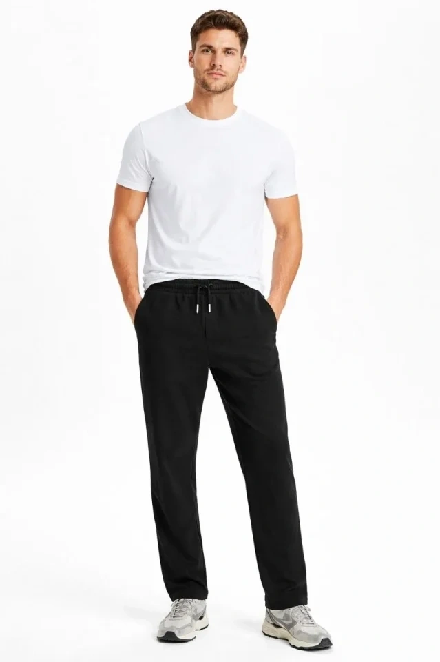 Erkek Düz Paça Beli Lastikli İpli Günlük Spor Eşofman Altı Rahat Fit - Siyah