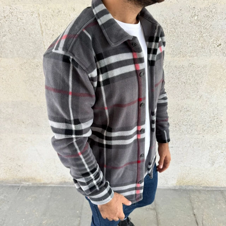 Erkek Pelüş Polar Hırka Gömlek – Yakalı, İlik Düğmeli, Göğüs Cepli, Yumuşak Dokulu Kışlık Regular Fit Rahat Günlük Model - Gri